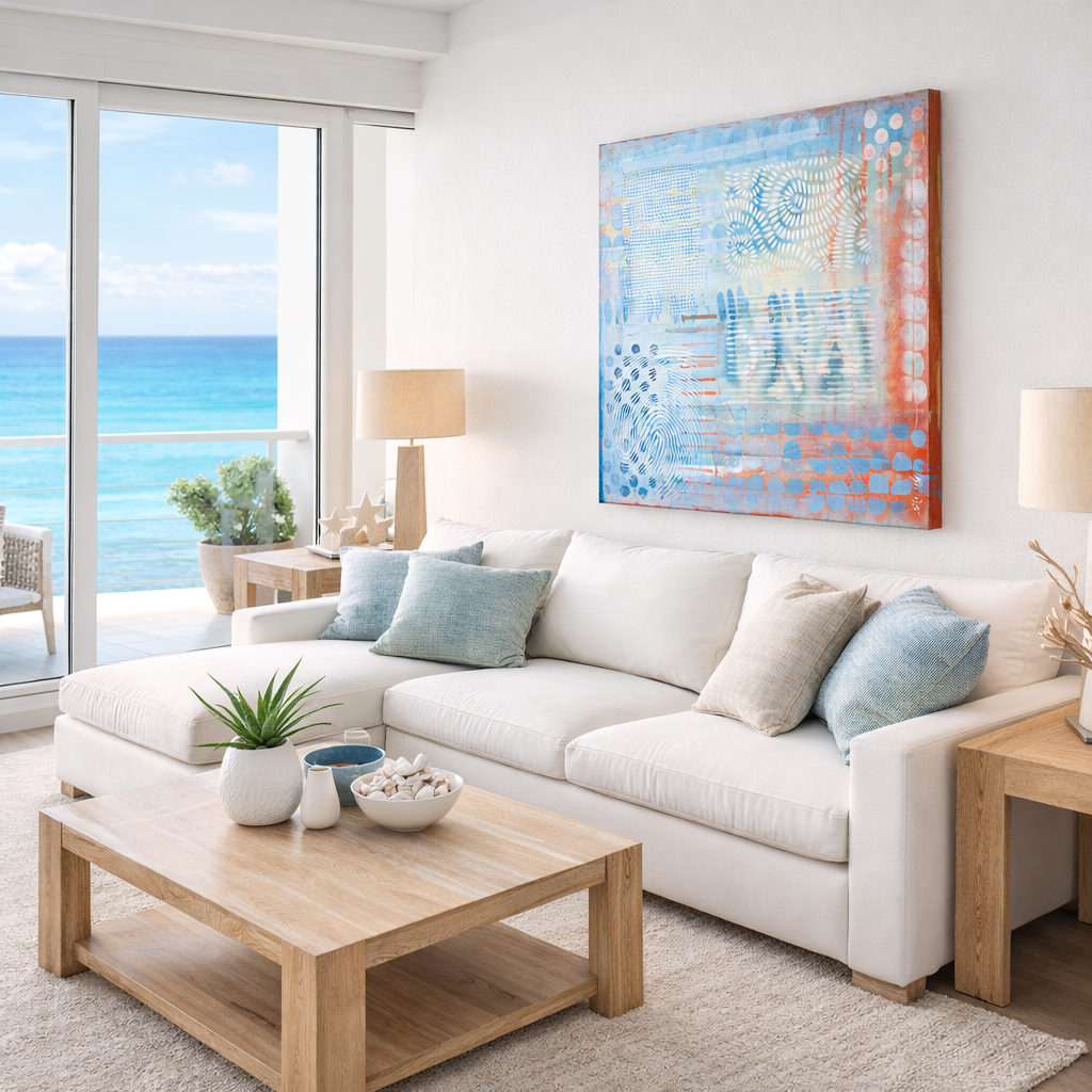 Beach DNA is a visual exploration of Aruba’s identity, expressed through the natural elements of its coastline and guided by the universal language of sacred geometry. Each artwork captures the “genetic code” of the island the textures of white sand, the rhythm of the turquoise sea, the movement of the trade winds, and the warmth of the sun.